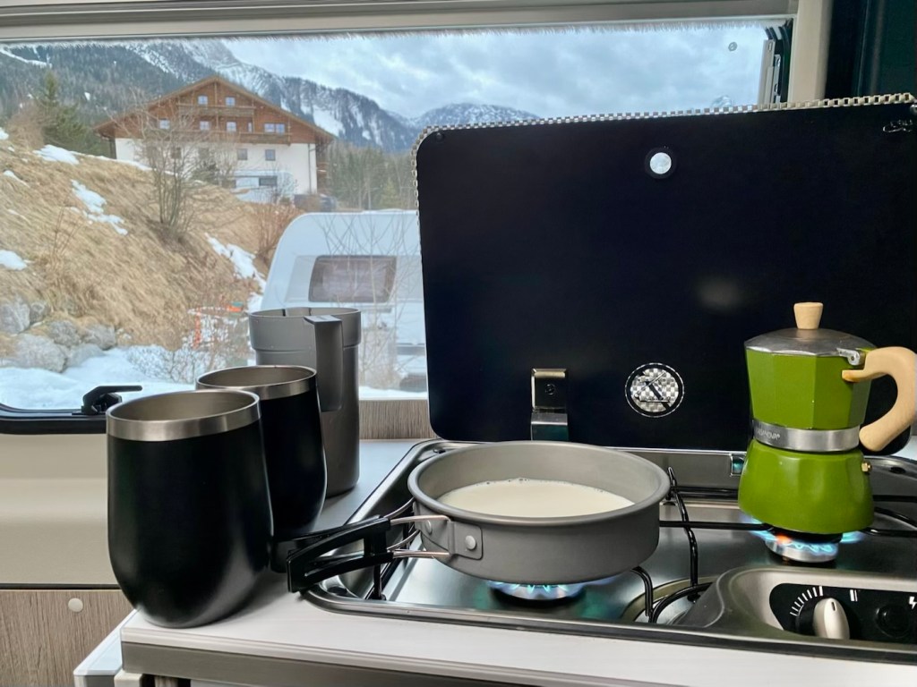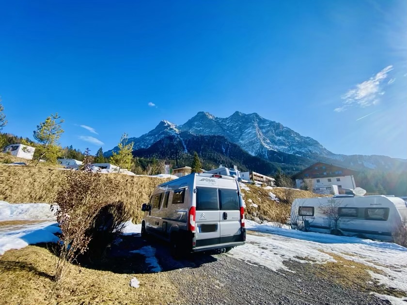 We passed Castle Neuschwanstein on the way to our first stop: a campground in Füssen, covered in ice and snow. -6C degrees in the night. We were plugged in and had it cosy inside our van (the practice a week ago was very helpful).