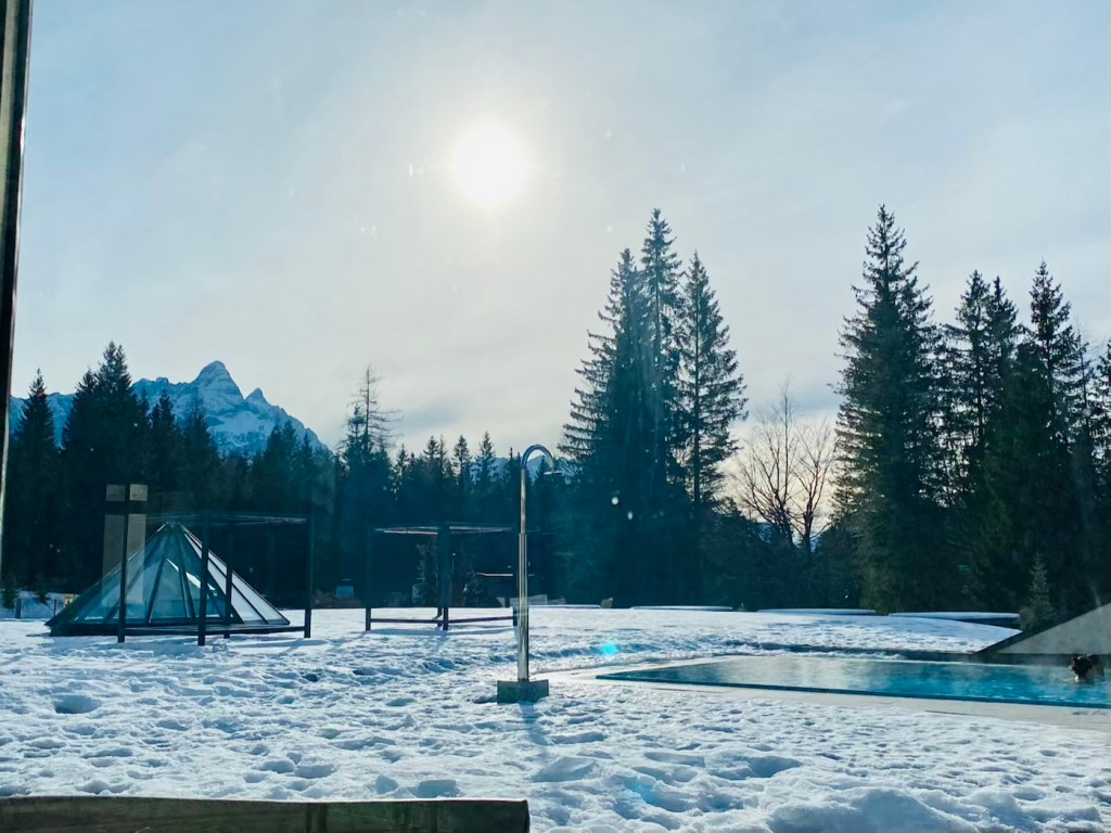 Well, it also came with access to skiing slopes, cross country skiing (not for me after falling ☹️), a spa, a sauna and a swimming pool. Yes, ok, it was a bit like glamping (glamorous camping 😍). We thought fair enough for the very first time… it was fantastic!