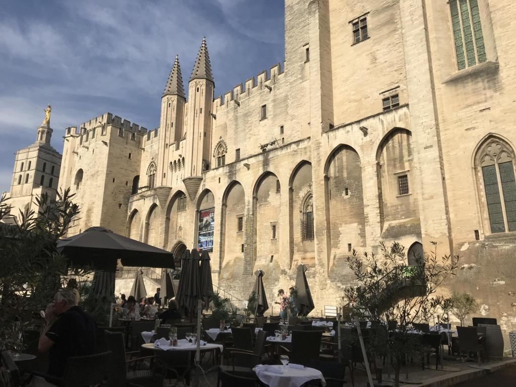 38C degrees in Avignon. It’s summer. And hot. Best invention: Cafés have parasols with misting water.