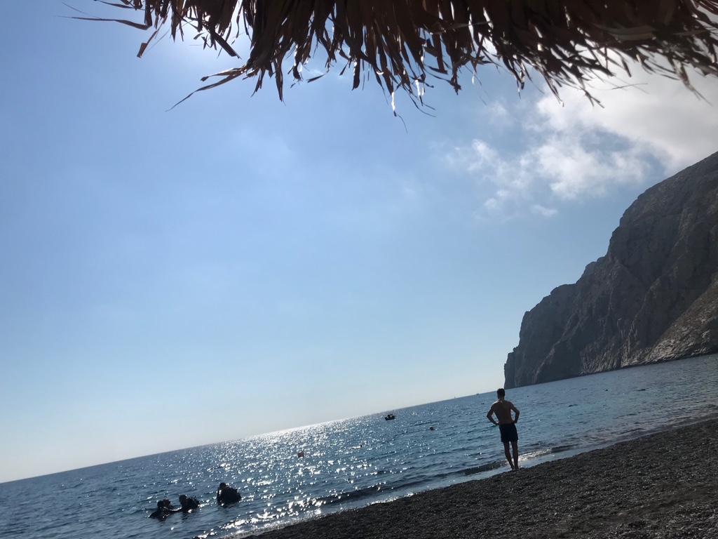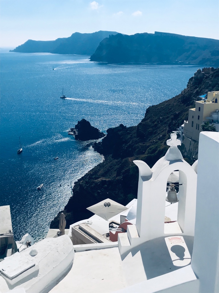Sun kissed lips. Wind in the hair. Salt on our skin. Autumn sun. Cave massages. Amazing blue sky. Olives. Feta cheese (sooooo creamy, the best I’ve ever had…). Squid (of course filled with Feta cheese…). Domed rooftops, ancient vineyards, volcanic beaches, iconic architecture, glittering waters. Fresh fish. Greek yogurt with dried cranberries. Everything is white here, so beautiful and exactly as dreamed of…just more beautiful…