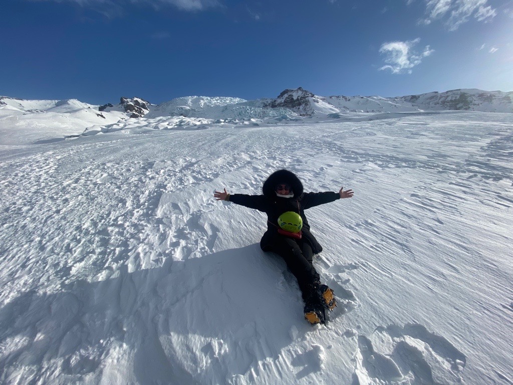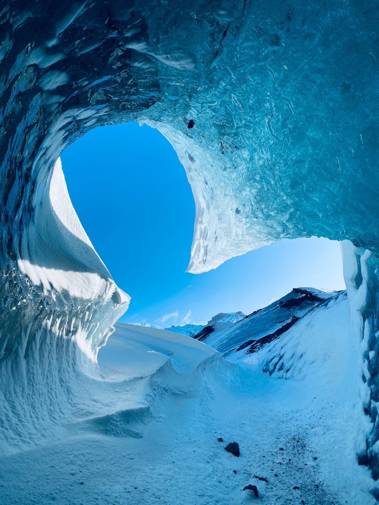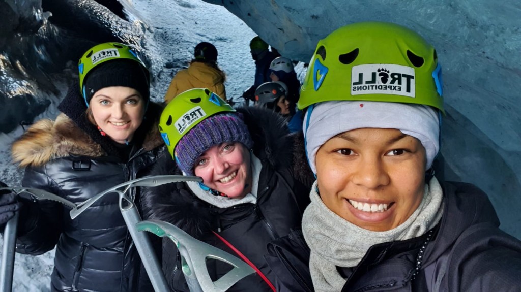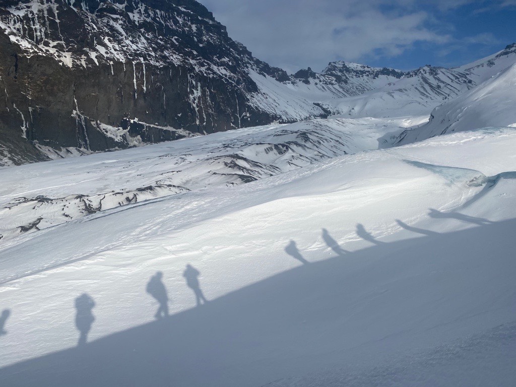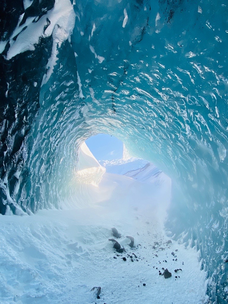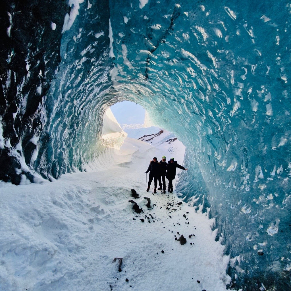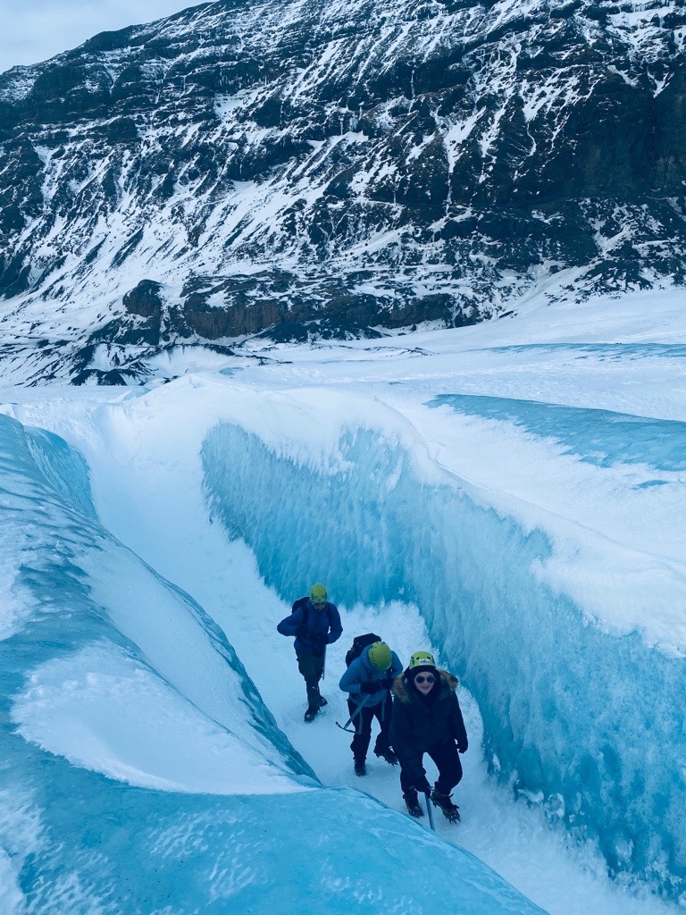 A casual stroll transforms into a trek across a glittering glacier. We hiked on top of it! Wow!