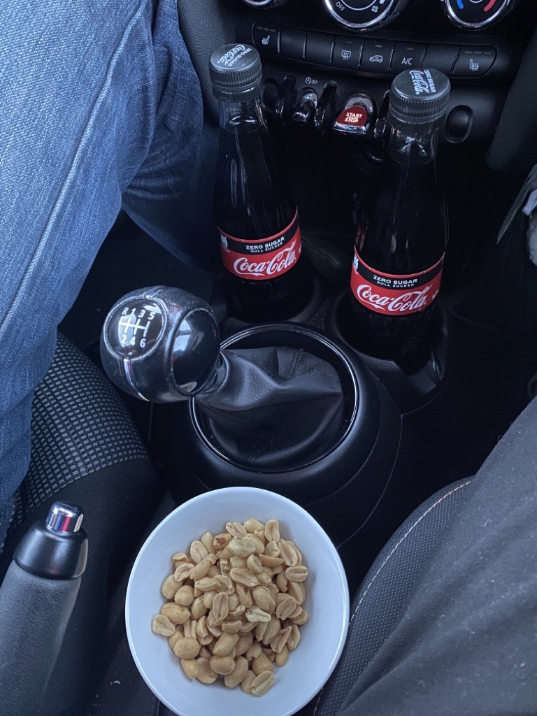 Front row is the penalty for coming too late (we notice that we should have cleaned the windscreen…). The film starts rather late due to summer time (let’s see if we middle old people can make it).