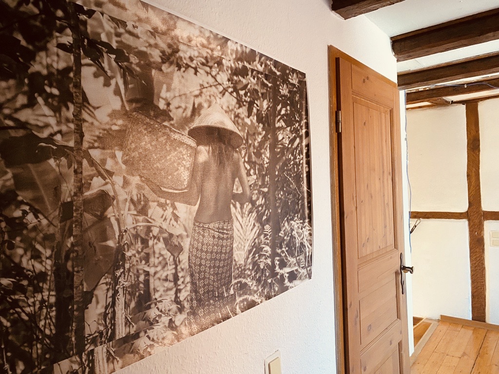 Sleeping longer (not in!). Less driving (yeah!). Internet interruptions („hello! Hello? Can you hear me?“). Lunch breaks with hubby. Neck pain (I totally underestimated the purpose of an office chair. No, it’s not made for turning around in circles!). Lounge wear & hair bands. No Autobahn rush hour (the best thing!). My husband, the only visible working buddy in the new next door office (when he spends one day in the plant I feel lonely). Lunch breaks in the garden. Home made cappuccino (still the best!). Somebody having breakfast (muesli crunch) while on Skype. Talking while muted… barking dogs. Crying kids. Chinese mother-in-laws shouting in the background (that’s the best one). Have I mentioned that mute button? Happy next door neighbor chicken (I’m sure their chit chat at 9am can be still heard via my Skype in Beijing), Gin & Tonic (virtual until 5:30pm. After that the real stuff).