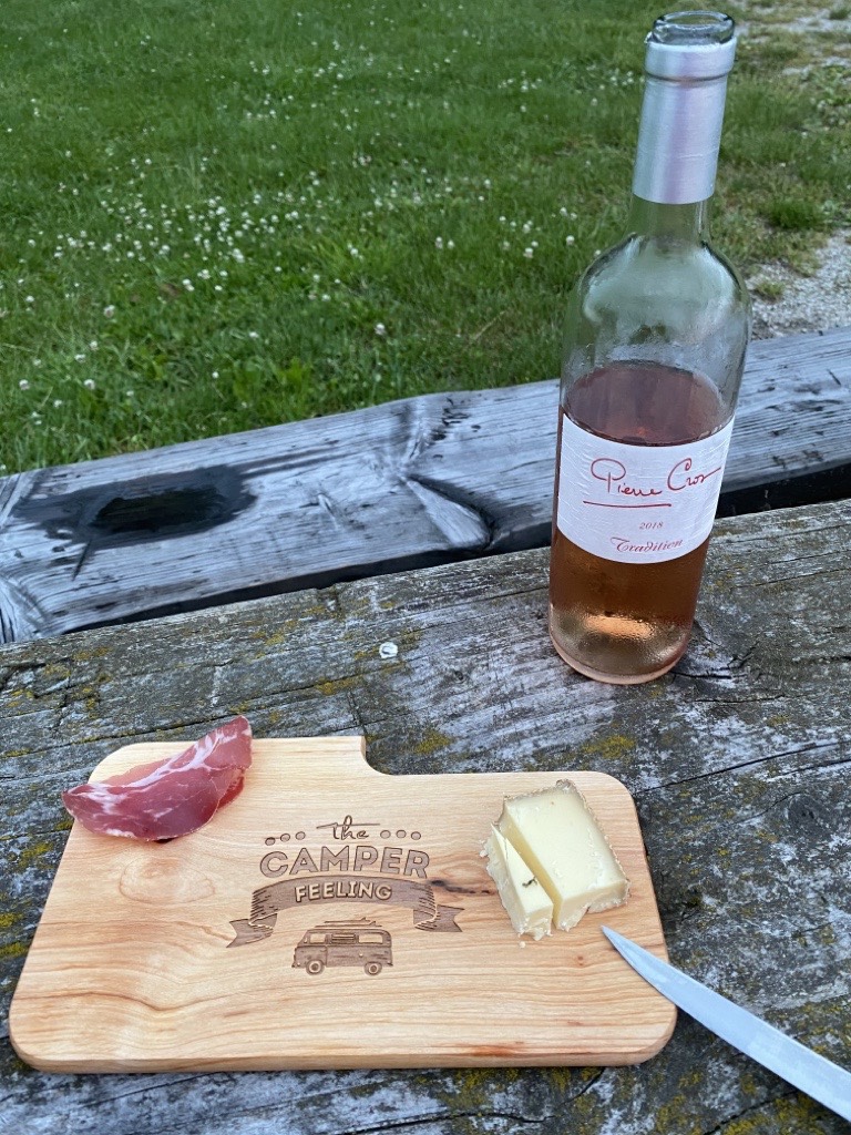 Our restaurant: dinner for two. A table & two benches. A board of cheese & wine. And just us. Watching the sunset, later the moon & the stars – could we wish for anything else? (No!).