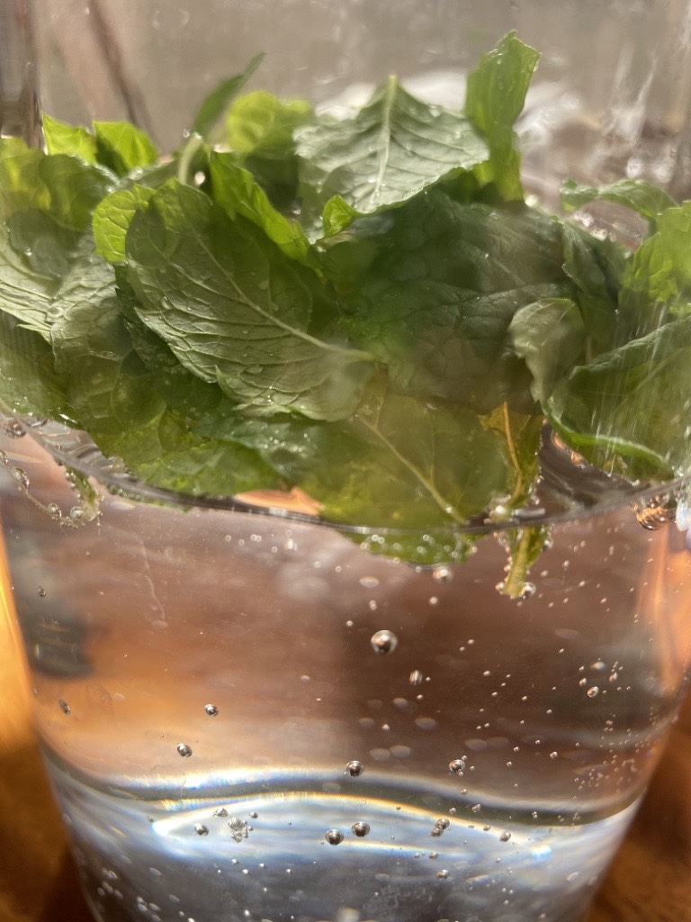 A cooling drink: water with fresh mint from the garden. Hubby’s comment: that’s a waste, better keep it for the mojito or caipirinha.