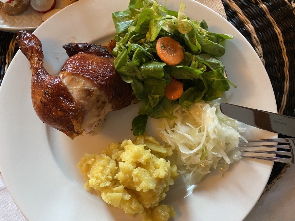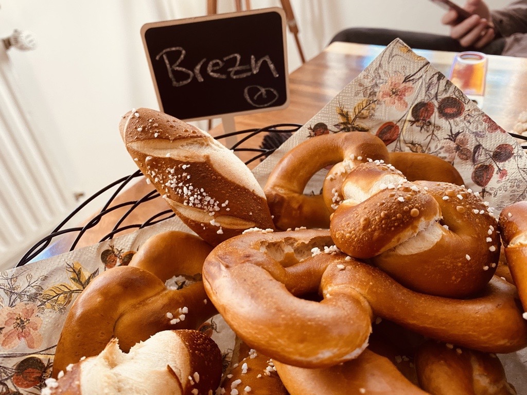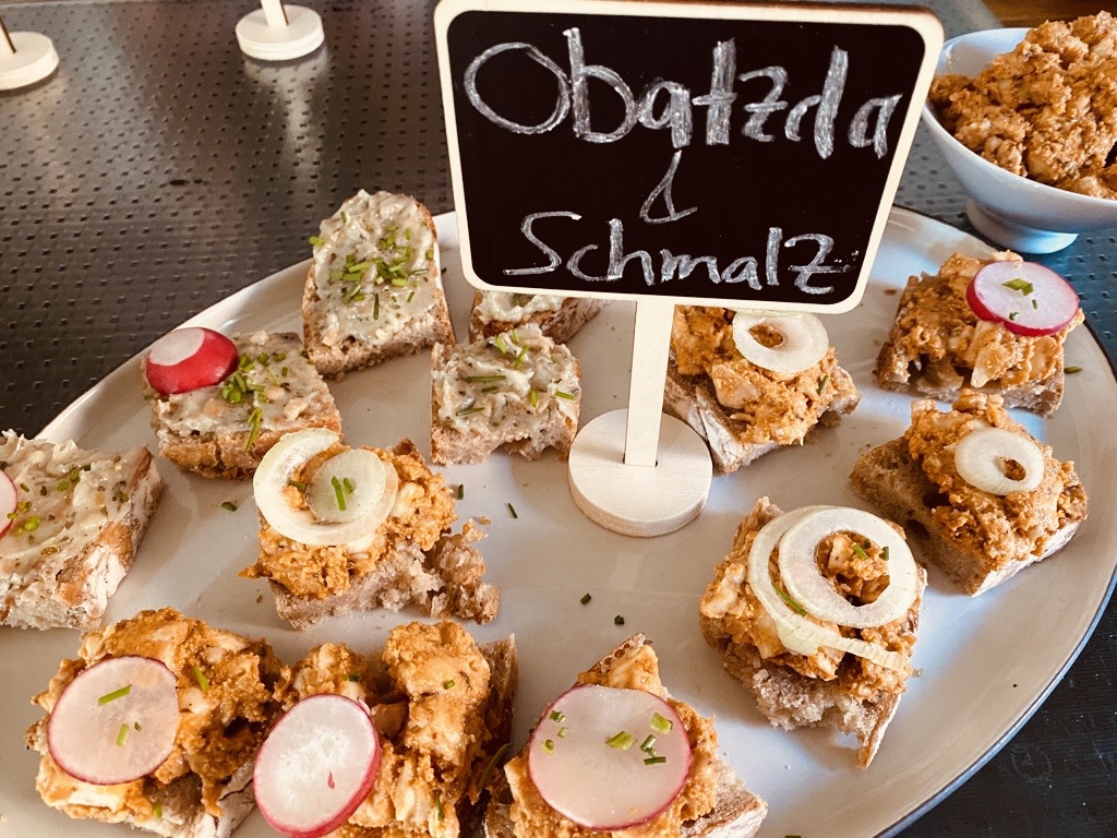 Our dinner was just as fabulous & traditional Bavarian: obatzda served on home baked sourdough bread, Haxn, Hendel & salads. And Brezn, of course.