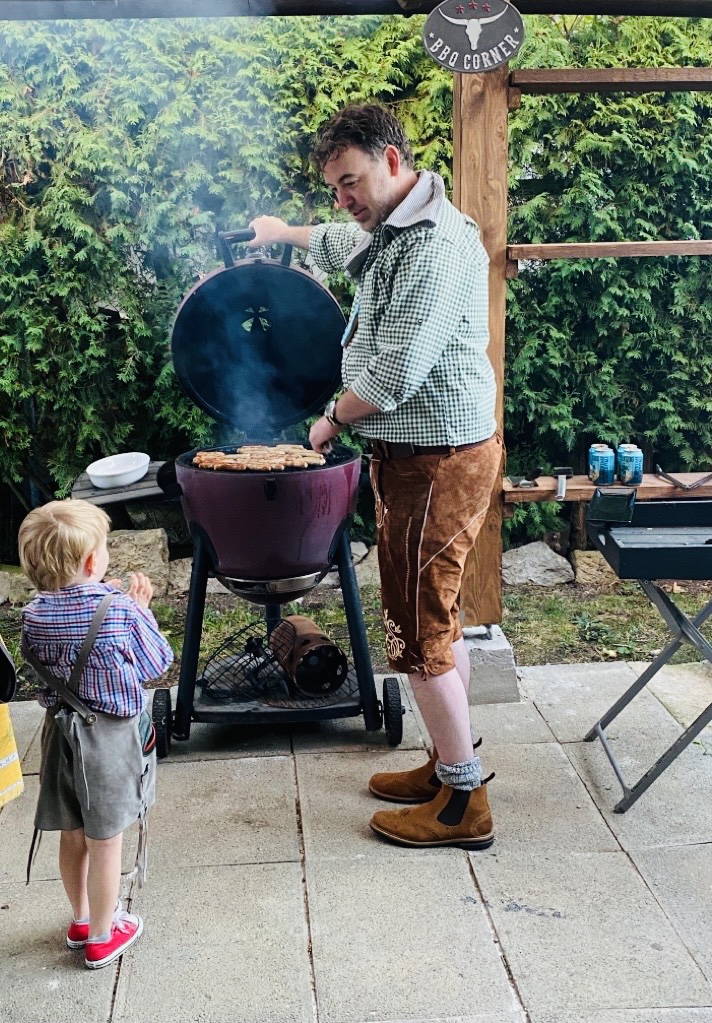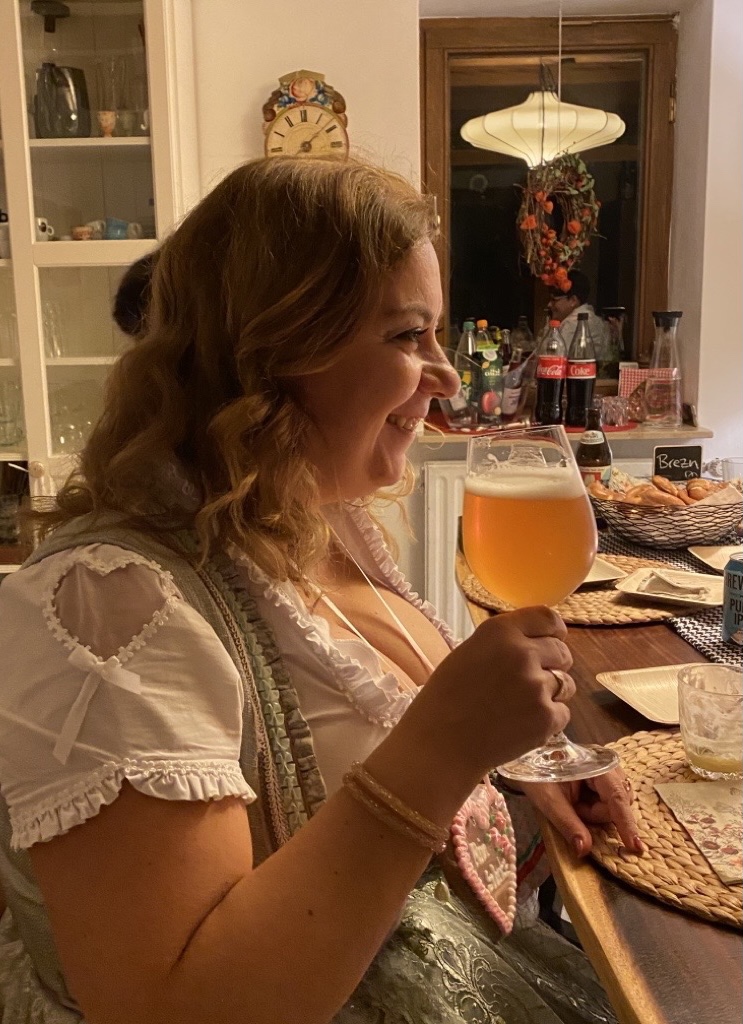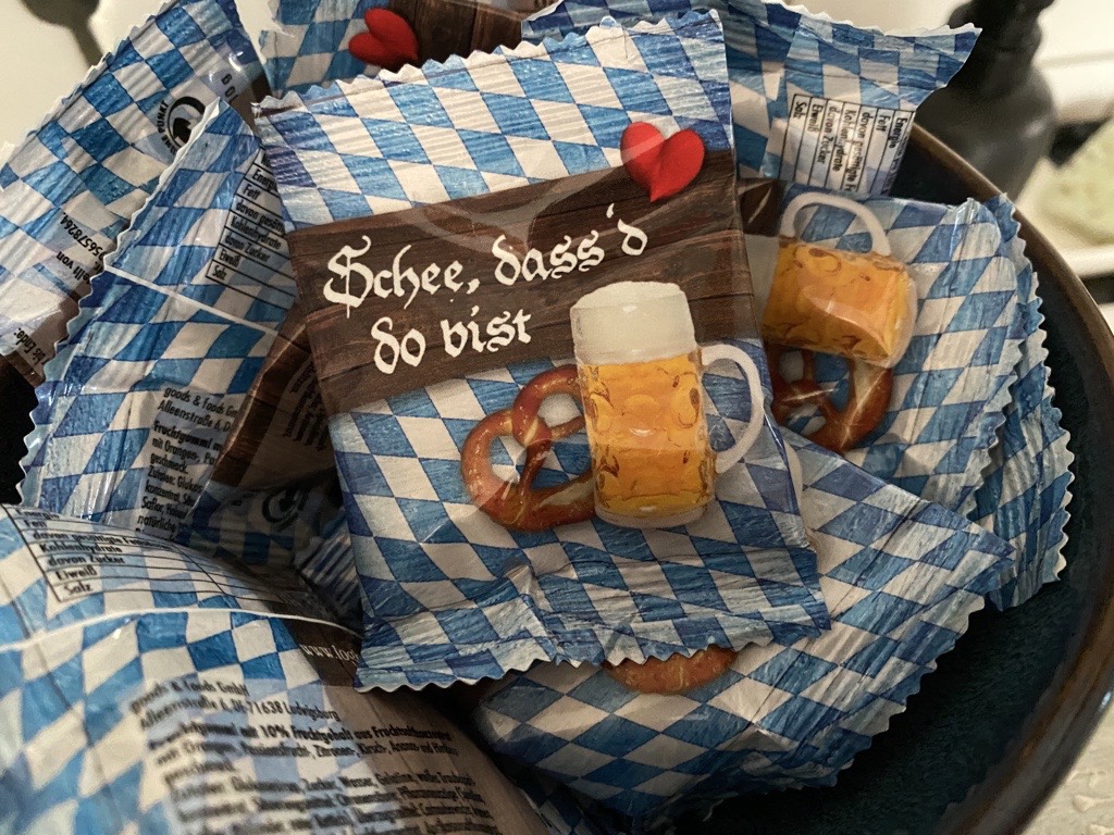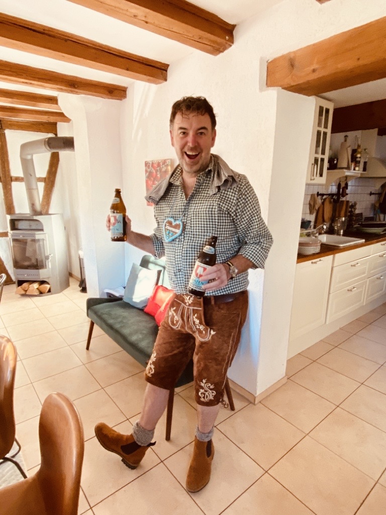 It’s not a tent at the Theresienwiese but our living room. We do not have a giant Ferris wheel and Alpine views in our backyard, hordes of strangers streaming in and out of your front door, or horse-drawn beer carriages parked in your driveway (luckily). And the biggest advantage: no queuing to enter this years party location. Or the restroom. Or the beer bar queue! And nobody has to pee in the garden. Lol.