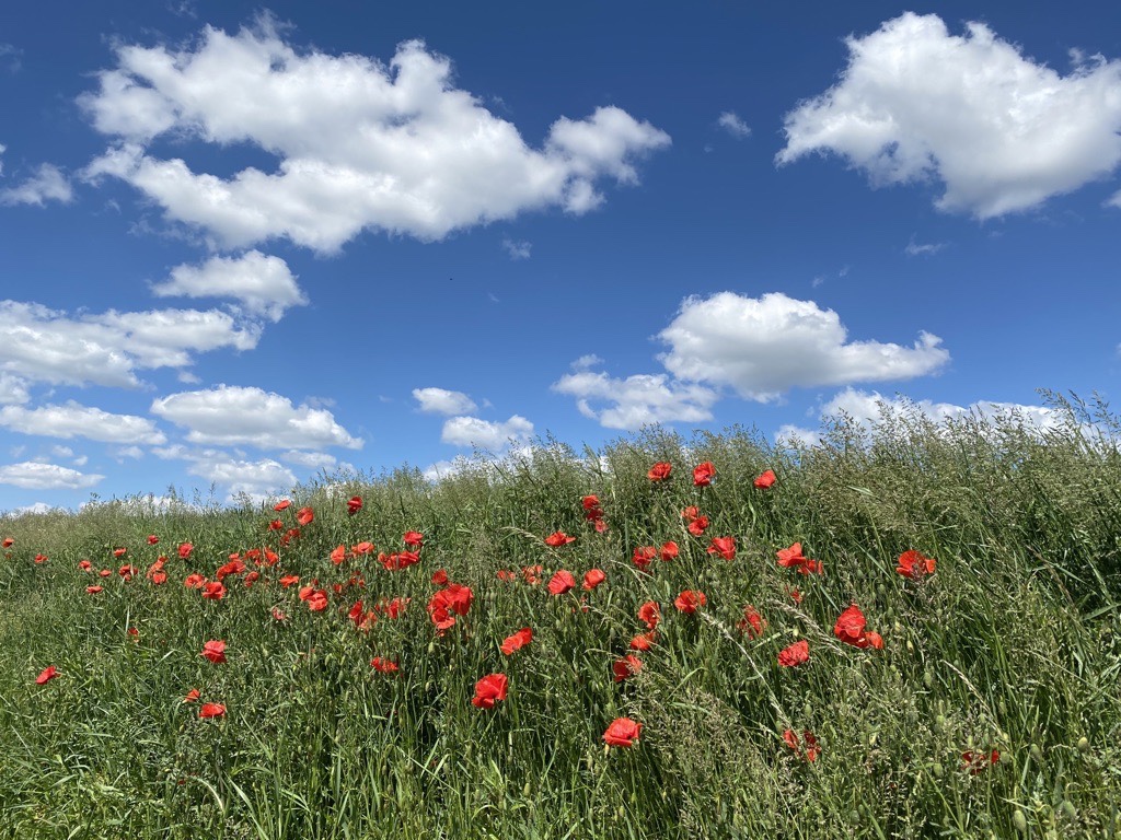 It’s the season. Wild & beautiful. Red. Poppy field paradises. Bees love them, too. Bright scarlet color. Poppy – the flower of sleep (opium). The national flower of the Albanians in Albania, Kosovo and elsewhere. The state flower of California.