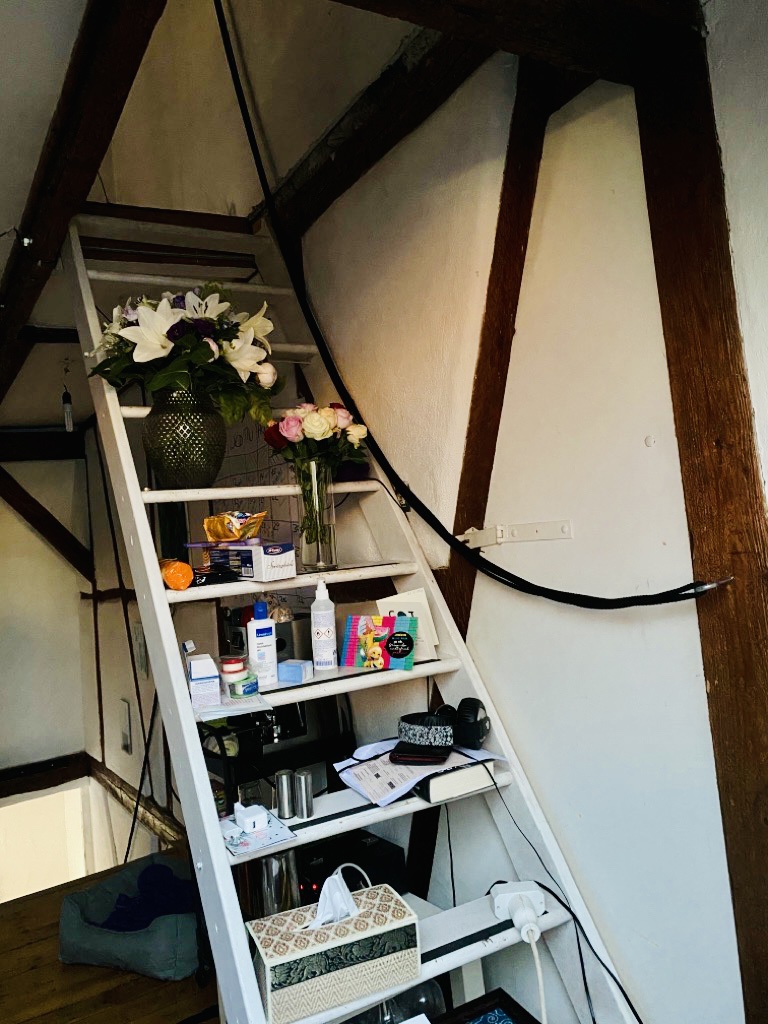 We have been living pretty much on the second floor since he’s been back (2 steps to the bathroom & 5 steps to the bedroom – perfect for those who cannot walk). For all others (me!!!) it’s like preparing for the next Shanghai vertical marathon: running up & down the stairs with food, post (believe it or not he is still able to place Amazon orders), drinks & visitors… All day. Every day. Great exercise, though. Daily power naps after lunch required (how can I get back to work on Monday?).