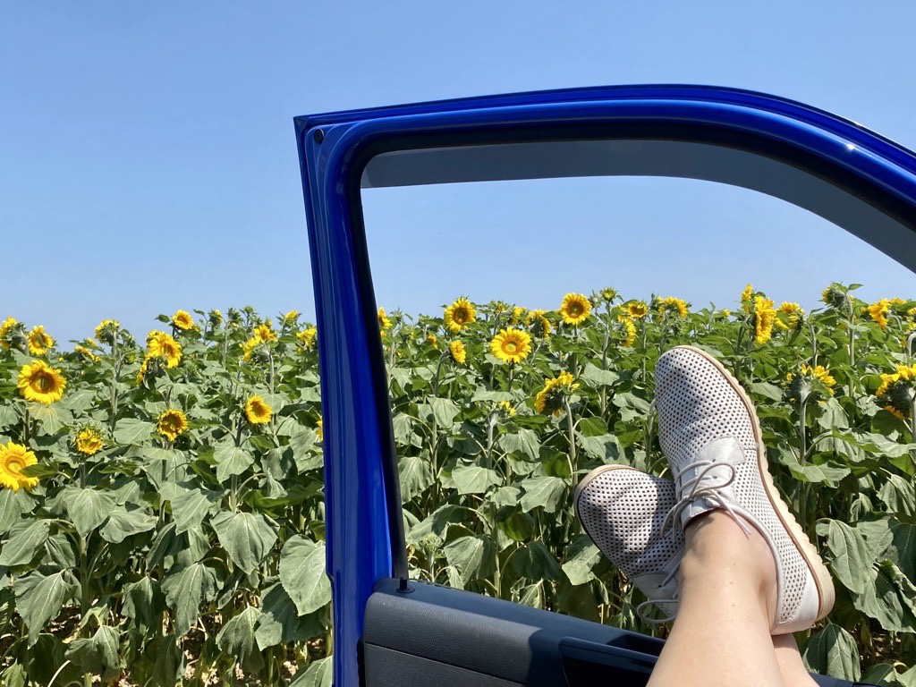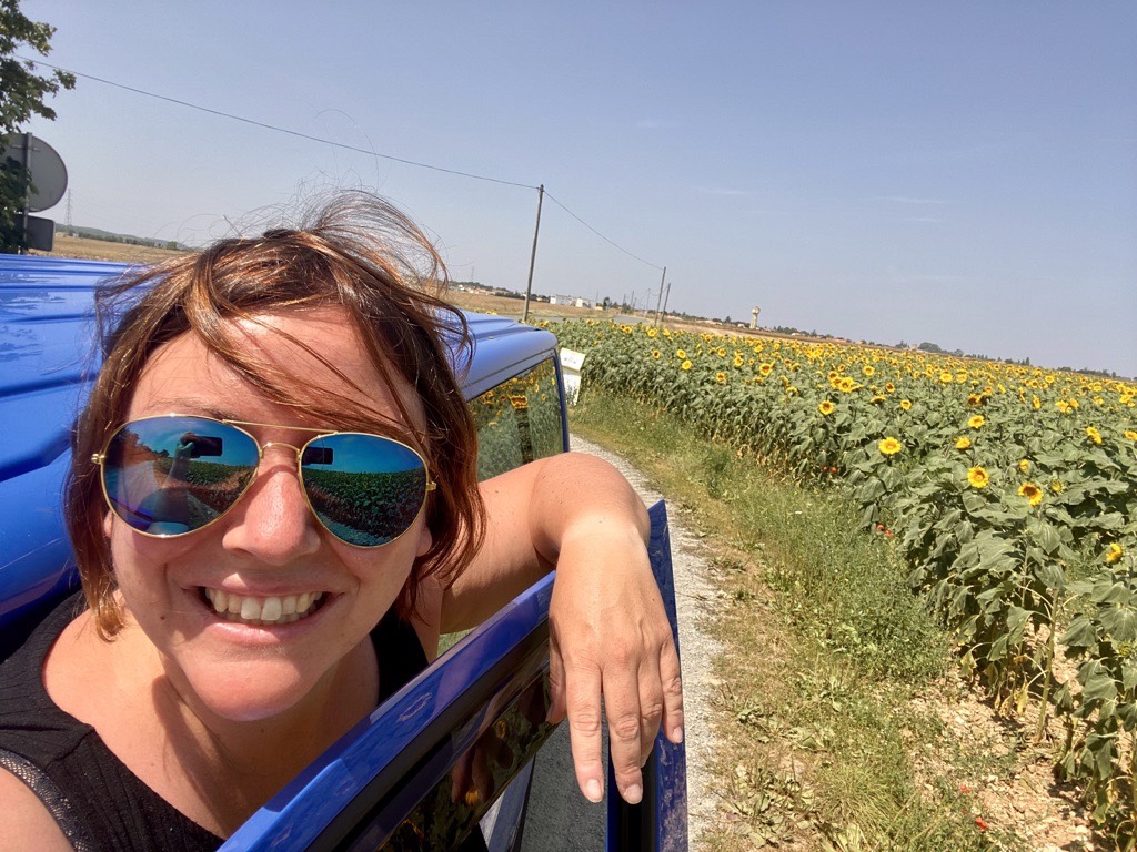 Out of Paris and on my way south to the French Atlantic coast. Passing by millions of the most beautiful sunflowers fields.