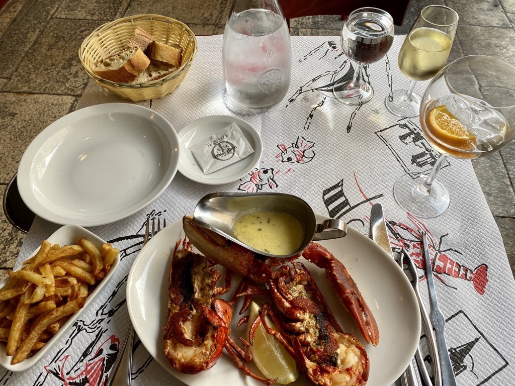 Lobster! Not sure how I ended up in the only restaurant without English speakers. Good that the table clothes showed what I wanted. Lol.