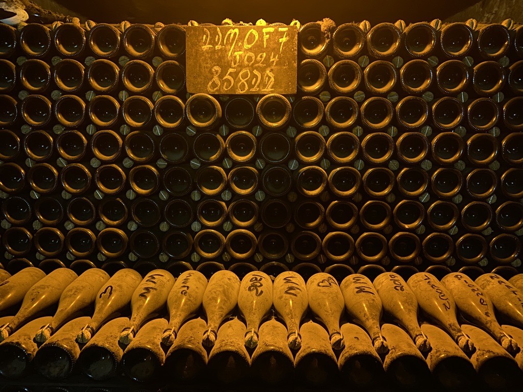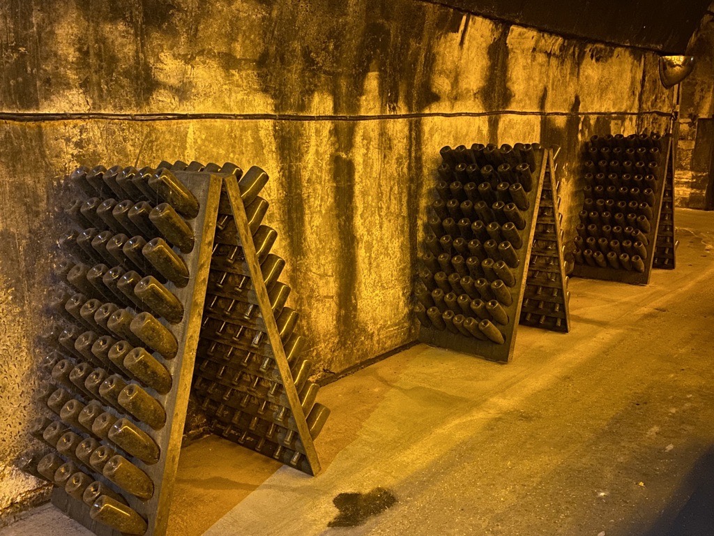 After aging, it’s someone’s job to turn each bottle slightly every day for about two months until the sediment settles in the neck of the bottle. After a shock freeze (-25C degrees) when the bottle is opened, the pressure forces the sediment in form of an ice-cube to come blasting out. Then the bottle is quickly corked to keep the bubbles inside, preserving the magic that is champagne. Producing this happy drink is serious business.