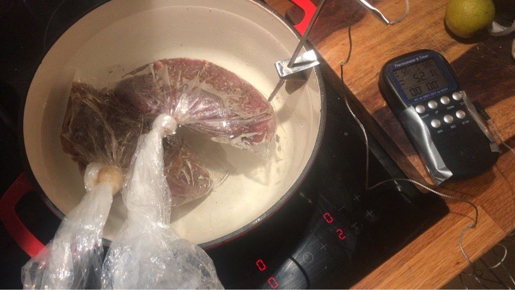 Baking bread and trying other new things like beef filet sous vide or simply “steak in a bag”. Burger party with dear friends. Fondue & Berliner.