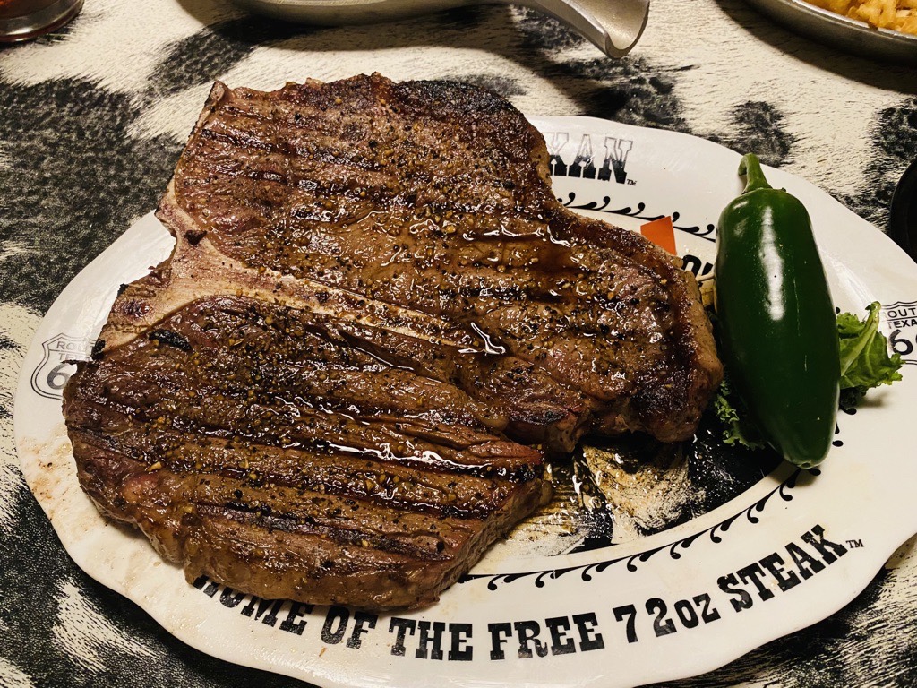 Let’s have steak & don’t get confused with the ounces… the steak challenge: Can you eat a 72 ounce (~2kg) steak incl. sides within 60 minutes? If you make it, it’s for free. If not, you pay $80! Well, we shared a 36 ounce T-Bone steak. Sooooo delicious!