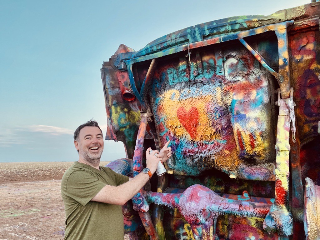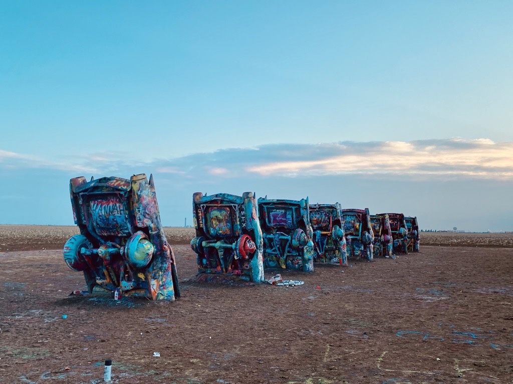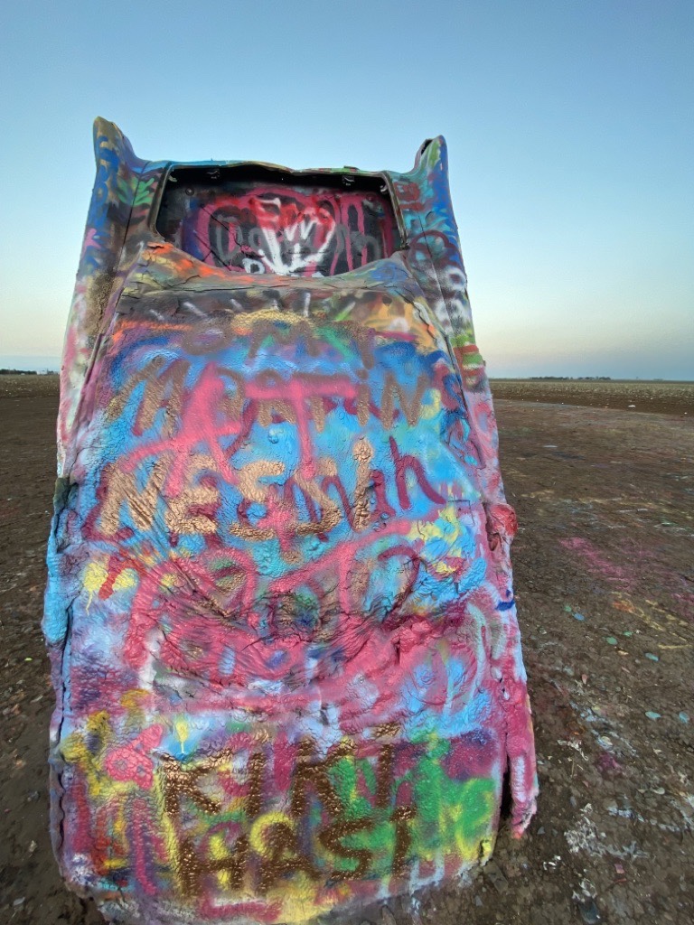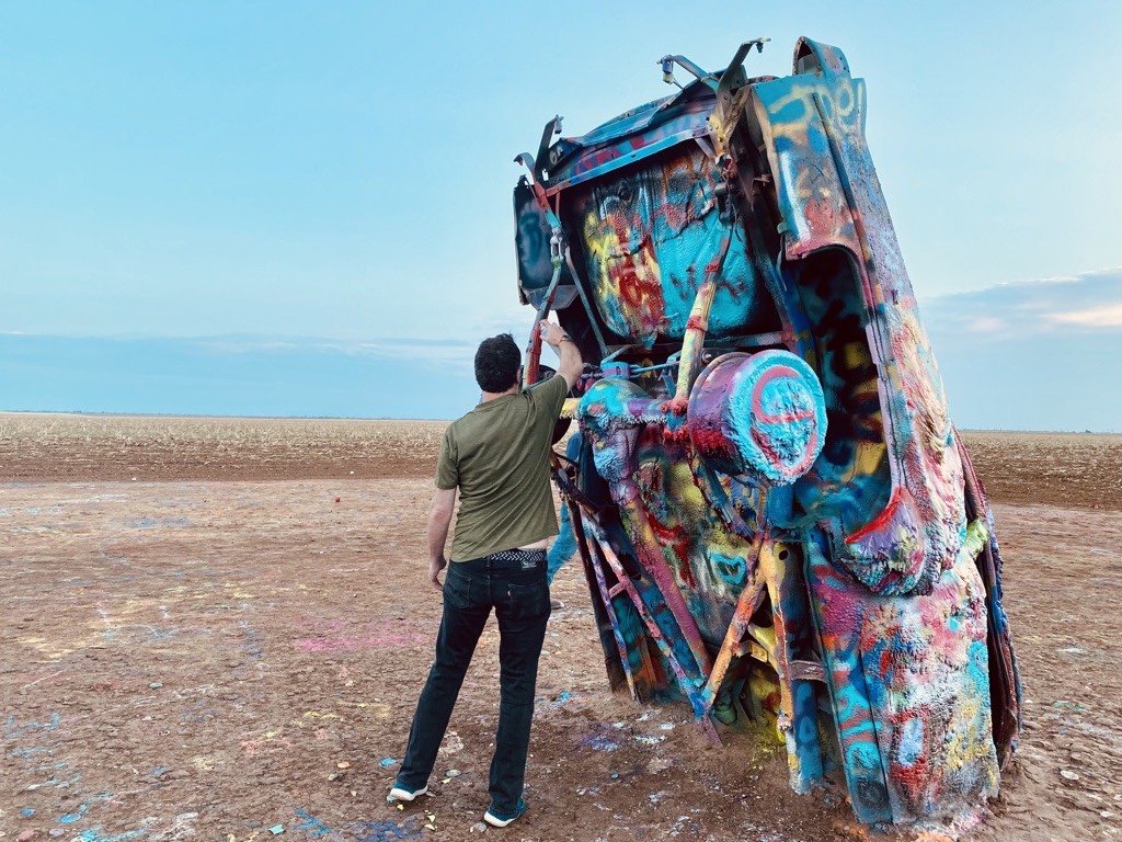 Don’t mess with Texas (a slogan for a campaign aimed at reducing littering on Texas roadways by the Texas Department of Transportation). Let’s spray graffiti on Cadillacs instead.