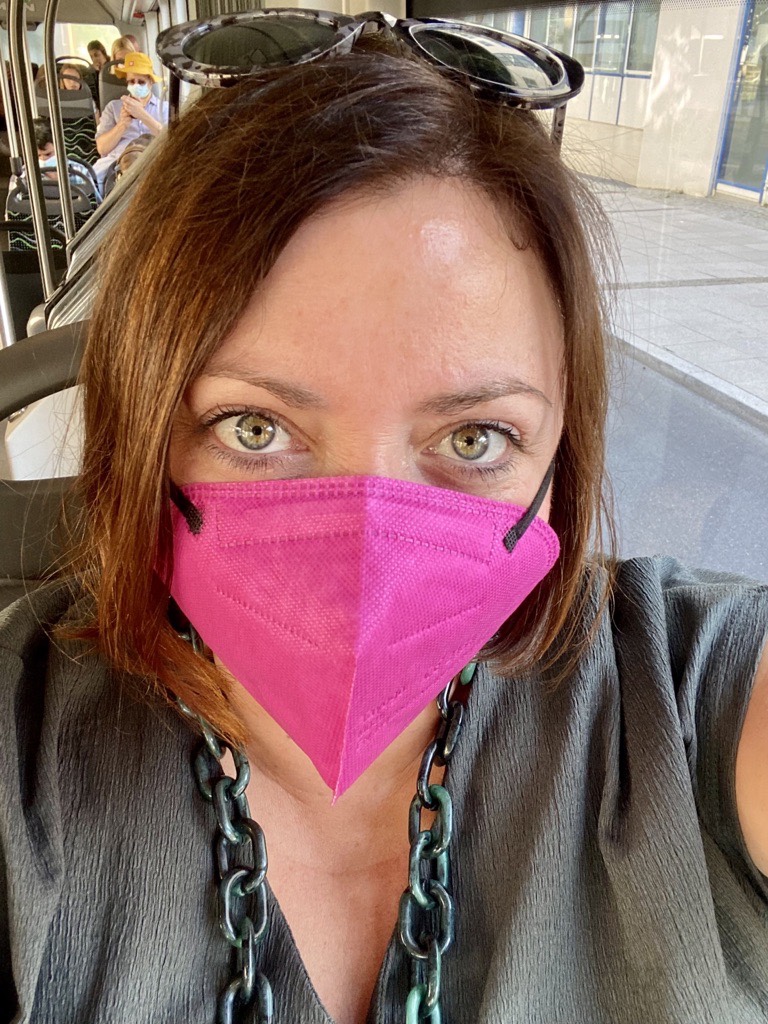 I used the 9€ ticket in August mainly for taking the bus (or the metro) to work. And boy, there were some interesting, funny people along those bus rides: teenagers too cool to wear the mandatory mask vs. older people who still don’t know how to cover mouth & NOSE with a mask! The bus driver who brakes so hard that even seated people had difficulties to cope with that. The loud chatting people having 2 seats inbetween them – hey, I have an idea, why don’t you sit next to each other? The ones talking (yes, there’s still people out there who use their smartphone to call someone!) on the phone (I know everything about last night now). 2 young ladies carrying a Blackforest Gateau and the older man trying to get a piece (not successful when they left with a whole cake after 20minutes). And finally there’s me, trying out the 9€ ticket with my pink mask. On time to not miss the bus and entering a stop ahead to catch a seat (hubby shared his tricks). Lol.