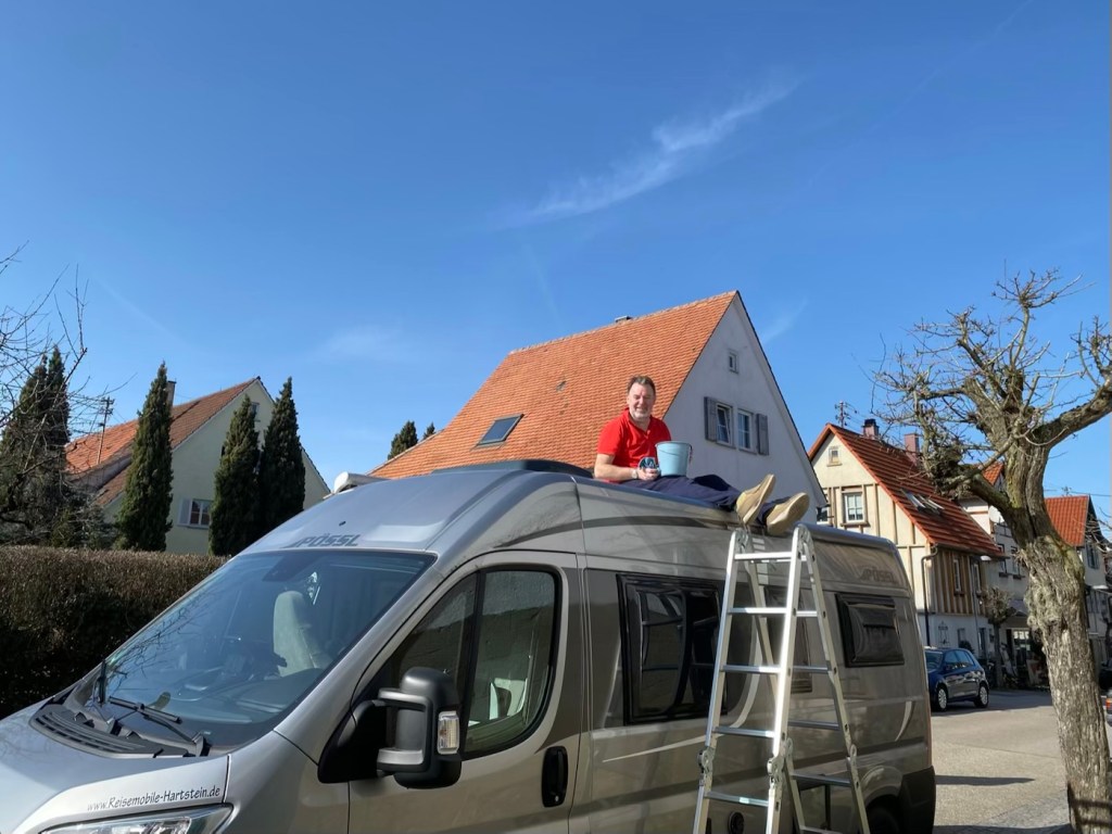Wi-Fi installed on board ✅ Solar cells are fixed on the roof ✅ The van is packed ✅ Temperatures are above zero… means our bathroom is ready to be used. Wohooo!