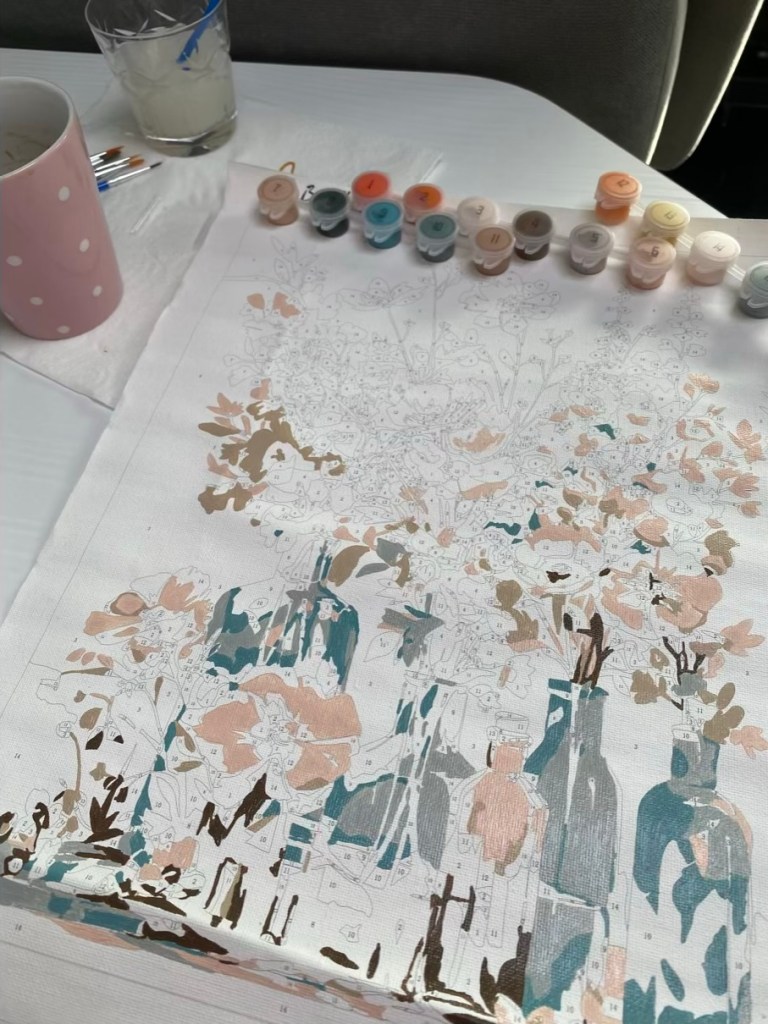 I had some wonderful days in Ireland. Sleeping in. Reading books. Painting by numbers. Gardening (or being amazed by mother-in-laws skills to use the chain saw cutting wood). Enjoying the sunshine & the windy sea. Catching up with family & friends. Enjoying fantastic food. Pancakes & ham for breakfast. Lamb for Easter Sunday roast. Homemade pizza. Fish & Chips. Sticky Toffee Pie… also glad to have spent the crazy week of politics in Ireland, love their humor, the only way to be able to cope with that shxx.