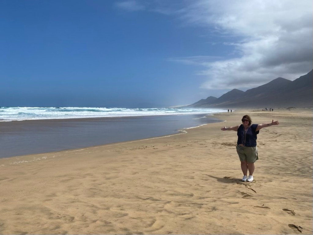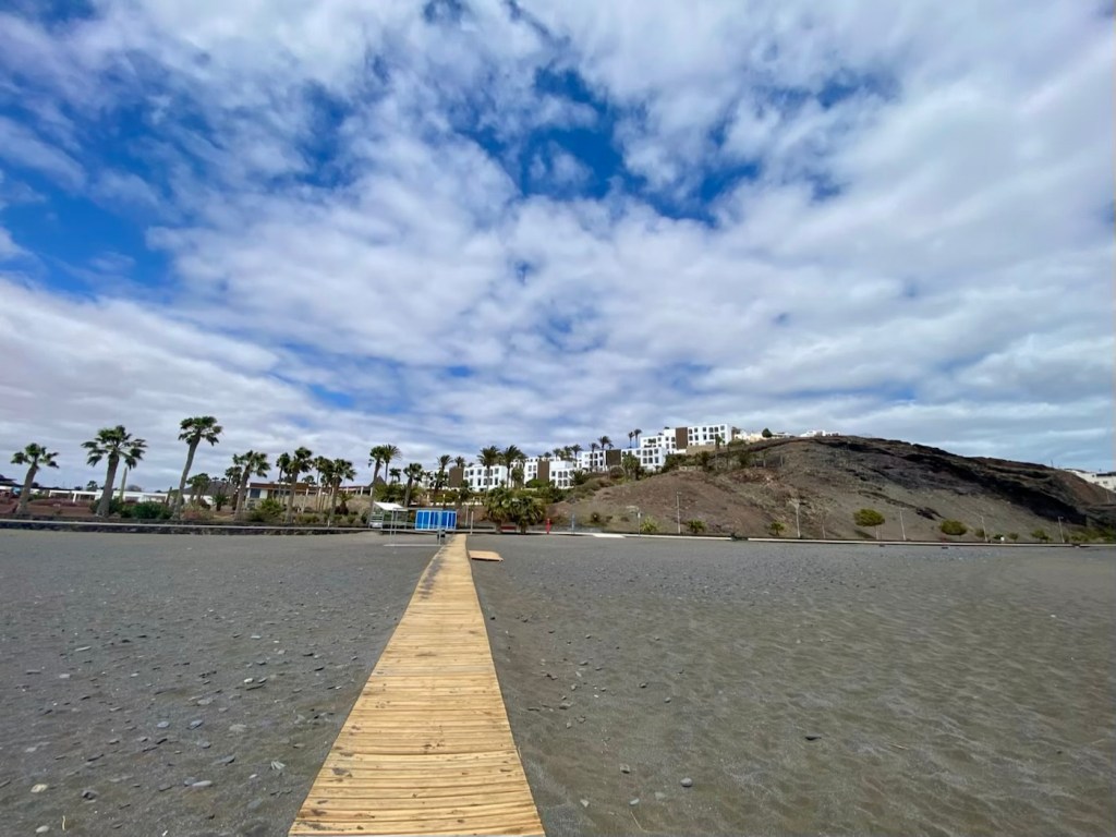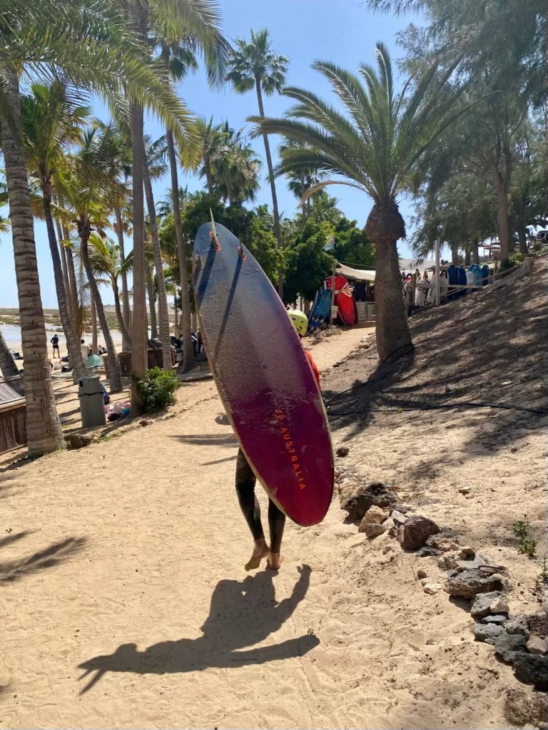 Fuerteventura, the island of palm trees 🌴Arrived and first steps on the nice and warm black sand beach. Felt amazing. Beach walk back to the hotel.