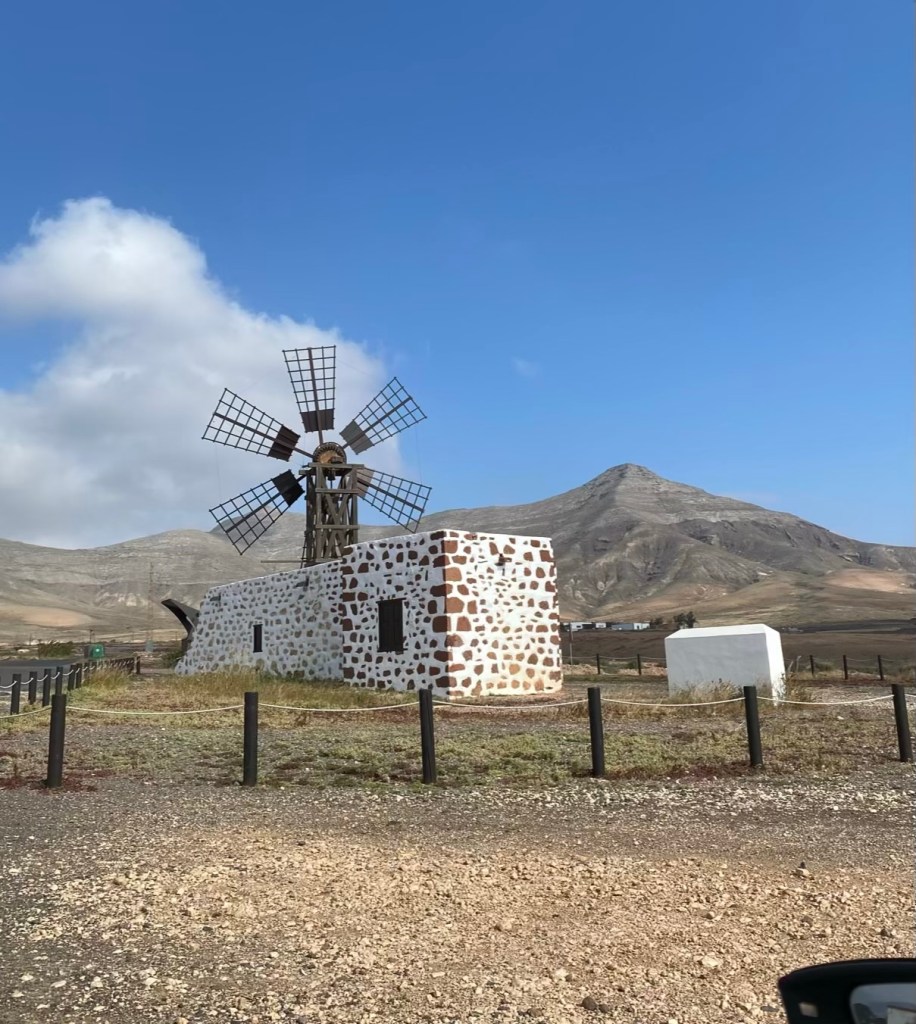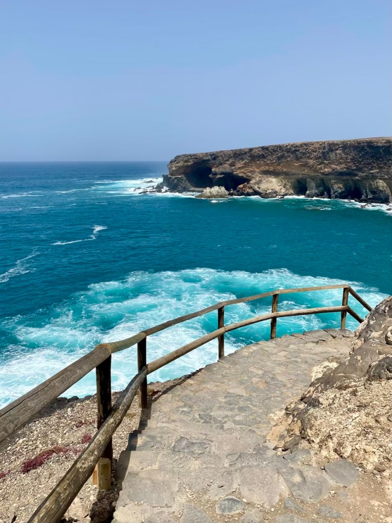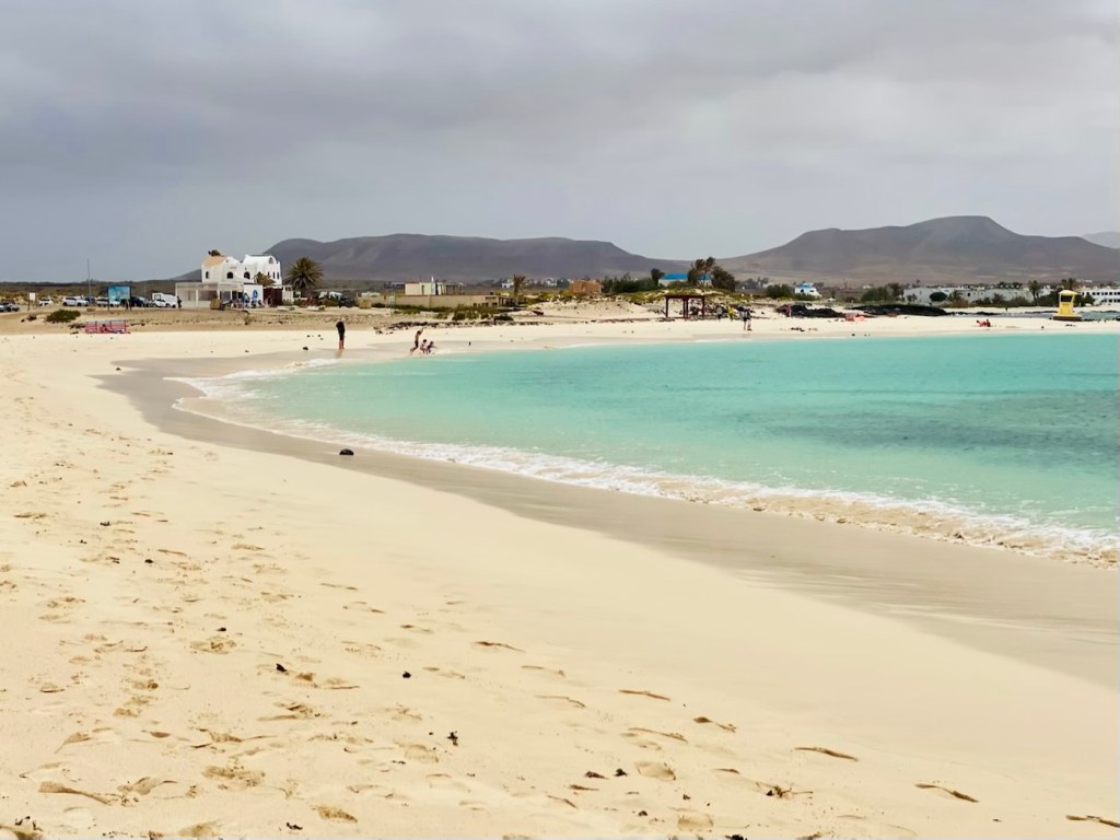 Insane game of colors. White sand beach & turquoise water or “the beach of the Canaries”.Different shades of Blue 🩵Windy & sunny. High risk for getting sunburn and being cold at the same time. Water temperature: freezing 🥶 A bit of Gaudi influence on Fuerteventura.White sand and black lava stones.Some are getting injured walking on those lava stones… 🦶 Another gorgeous lighthouse. Black Paella 🥘 for dinner 😍