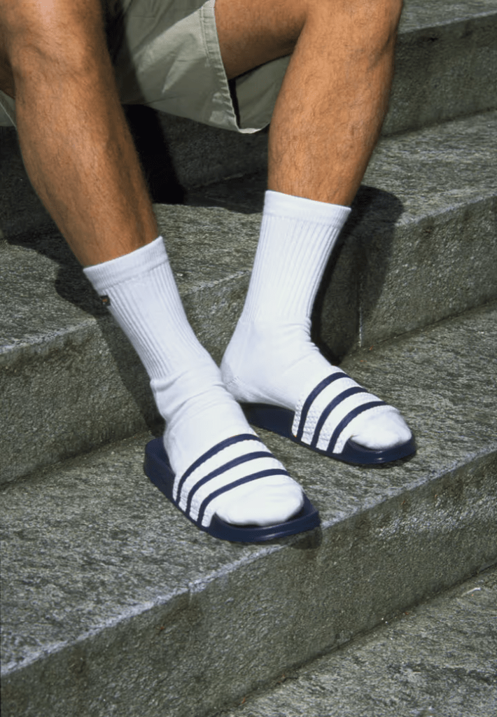 White socks in sandals