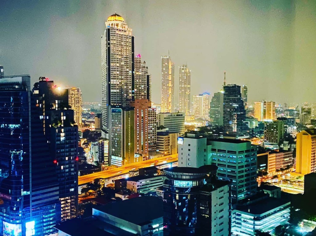 We love to be back in Bangkok. Sleeping on the 26th floor, panorama view included & city feeling again: those busy streets, permeated by the smell of grilled food and boiling soup (and fumes). Taking in all the sights, the sounds and smells, it is a sensory overload. How to cross those busy intersections? Just wait and follow the locals. All those taxis, most of them don’t want to use the meter. The tuk-tuks that overcharge us tourists who can’t speak Thai (but it’s so much fun anyway). Seven-Eleven stores appearing on every single block, weed shops usually next door. The chilling breeze of air conditioners on a sweaty sky train. The Thai flair that all restaurants add to their international cuisine. My cheeks flushing in the warm, humid summer, I mean winter weather – the only weather & season there is here. Cultural identity where the old and the new and the thai and the western all intertwine to become such a whirlwind of a city. All of that is Bangkok, one-of-a-kind charming city with its beautiful chaos! And us in the middle of it. Yeah!