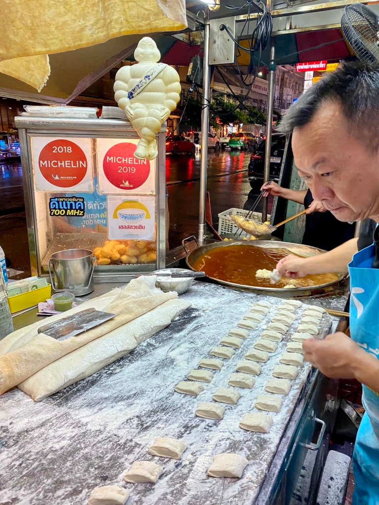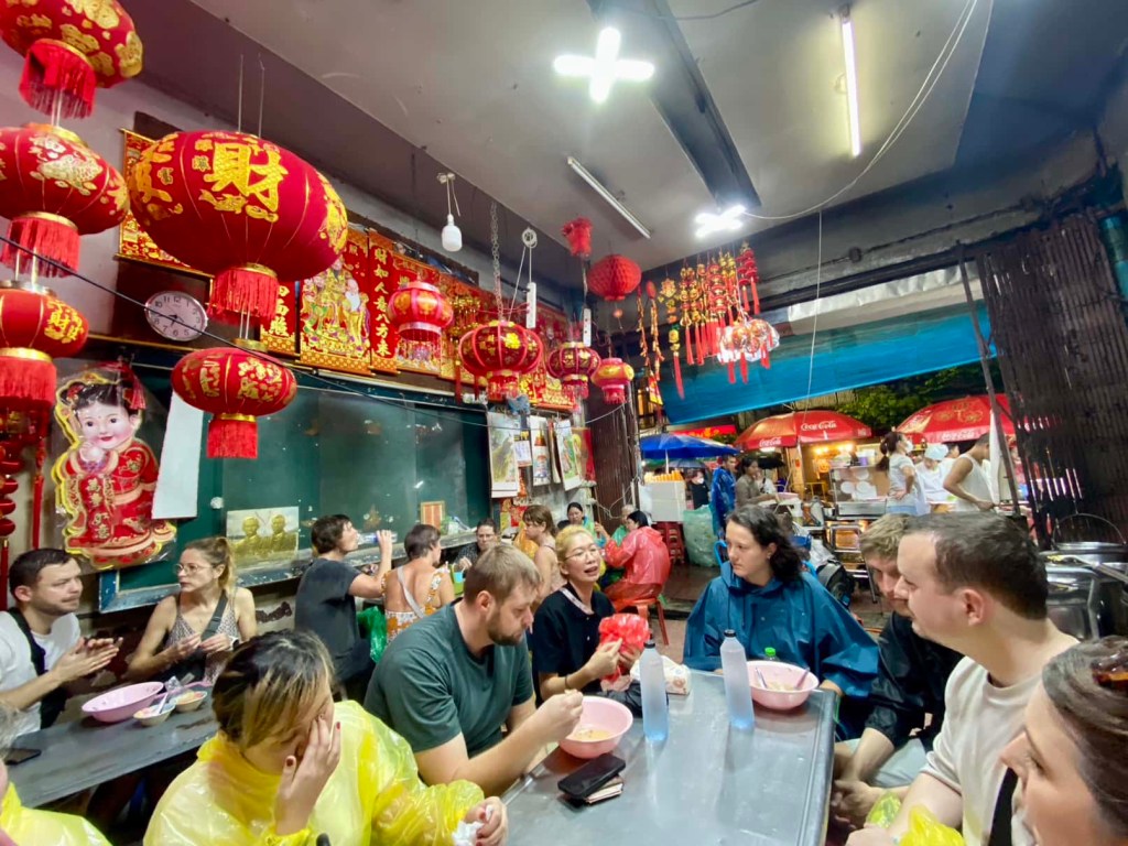 Second night in Chinatown. This time a guided food tour by locals. The heavy rain wouldn’t stop us. From Michelin star dumplings to Netflix curry back to Michelin star noodle soup followed by soy sauce ice-cream. Again wowed by those flavors, fusions, colors, smells, buildings, the crowded streets in Chinatown, and the people!!! That’s Bangkok!