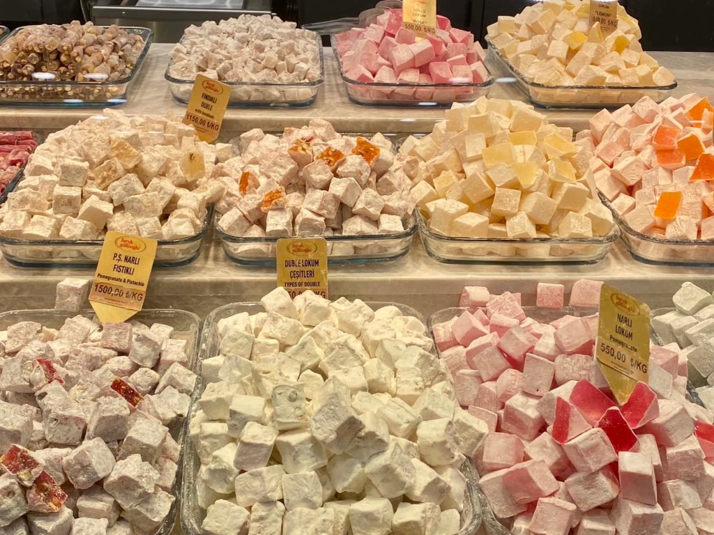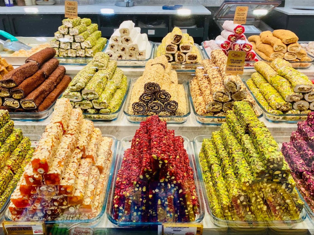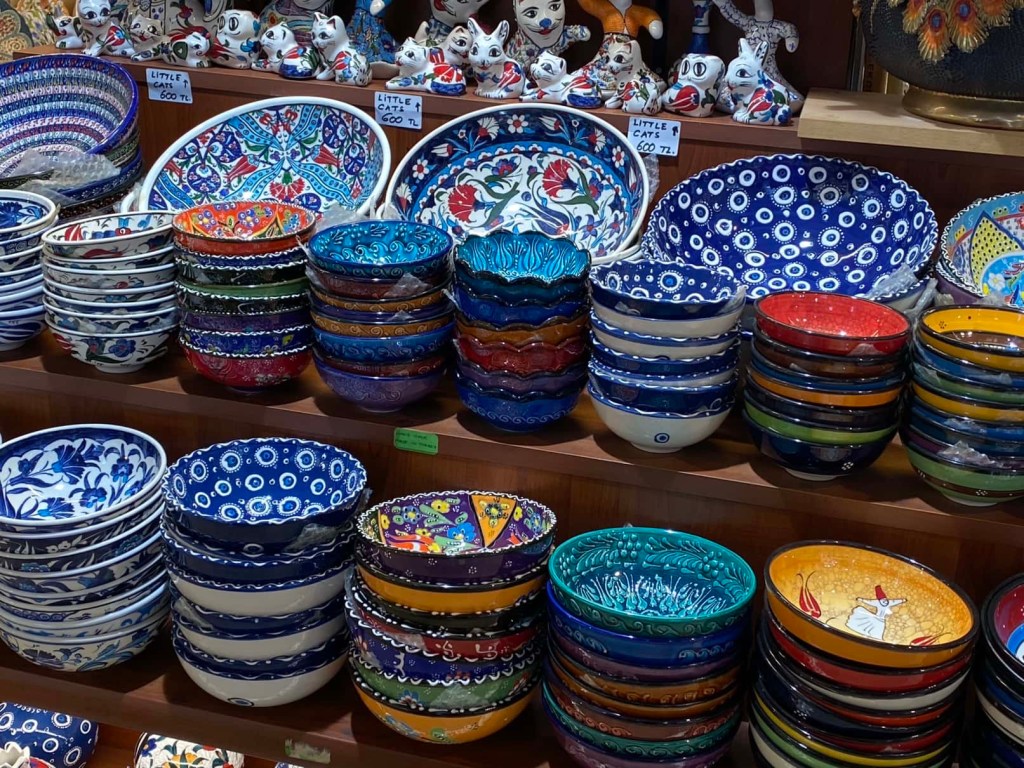 carpets, tea and coffee sets, lamps, clothes, ceramics, jewelry, spices and Turkish sweets…