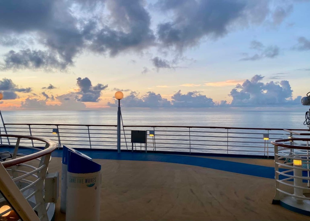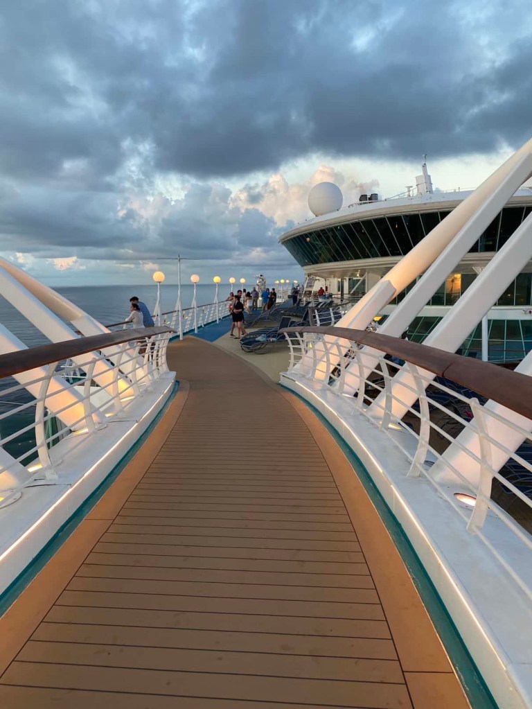 Adios, Tampa!That’s Eunice from South Africa. She’s working 9 months onboard the cruise before going home to see her son for 3 months. And repeat. Walking & jogging track on the cruiseLast sunset in 2024